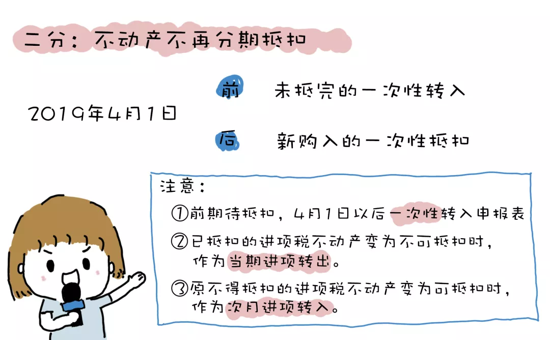 二分則指的是不動產(chǎn)不再分兩年抵扣
