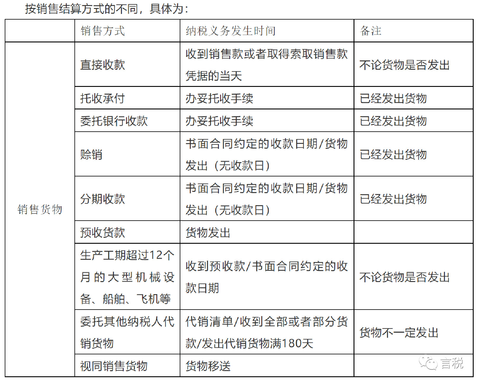 1、納稅義務發(fā)生時間基本規(guī)定:納稅人發(fā)生增值稅應稅銷售行為,納稅義務發(fā)生時間為收訖銷售款項或者取得索取銷售款項憑據的當天。詳見下表(摘自中稅答疑):