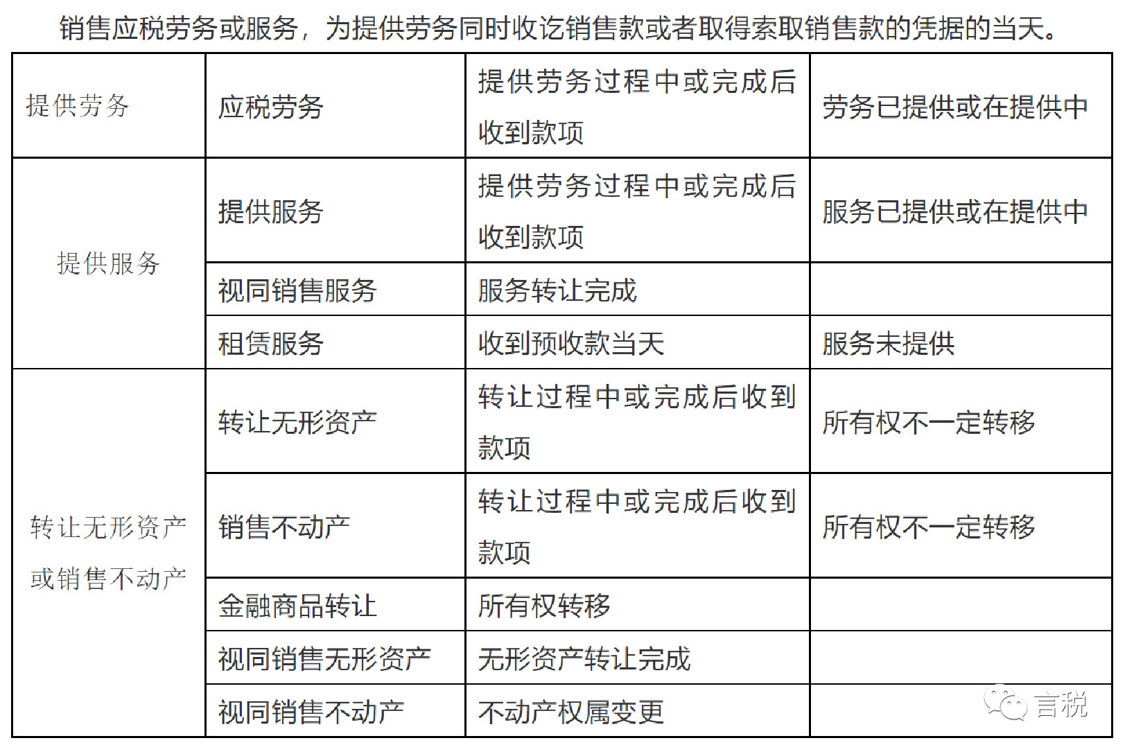 收訖銷售款項,是指納稅人銷售服務、無形資產、不動產過程中或者完成后收到款項。取得索取銷售款項憑據的當天,是指書面合同確定的付款日期;未簽訂書面合同或者書面合同未確定付款日期的,為服務、無形資產轉讓完成的當天或者不動產權屬變更的當天。