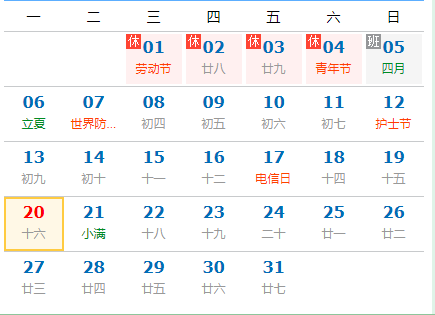 2019年5月申報(bào)征期日歷: