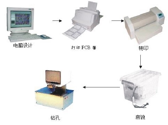 系統(tǒng)配置:計算機、激光打印機、轉(zhuǎn)印機、腐蝕桶、高速視頻鉆、轉(zhuǎn)印紙、合金鉆頭