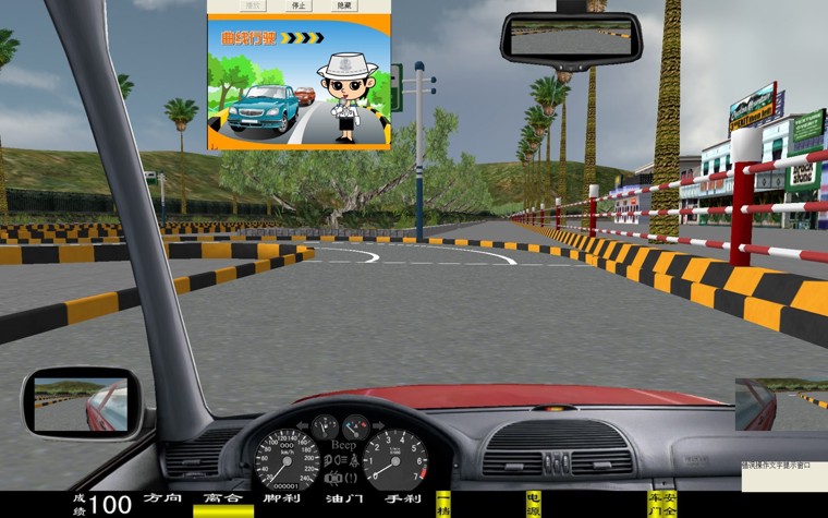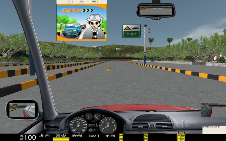 華育寬頻 HYM-9 型汽車駕駛模擬器是一種 80 度視角配 22 寸液晶彩顯的多功能新一代的主被動式汽車駕駛模擬器。它突破了原來在行駛十字路口向左拐的視線盲區(qū),行起車來更加方便逼真, 從而清楚的觀察車輛與路面的位置關(guān)系。是目前市場上絕對最新版的汽車駕駛模擬器軟件。 一、界面顯示 新增加 有: 轉(zhuǎn)向、 油門、 剎車、 離合器深淺進(jìn)度; 檔位、 訓(xùn)練成績, 后視鏡(左、右、中)、 場景地圖顯示; 界面儀表盤上顯示有: 車速表、 發(fā)動機轉(zhuǎn)速表、 大燈、(遠(yuǎn)光燈、近光燈、視寬燈)、 轉(zhuǎn)向燈、 安全帶提示燈、 車門關(guān)閉提示燈、 機油燈、 電瓶警告燈等。 在訓(xùn)練過程中、通過雙擊鼠標(biāo)、可實現(xiàn)正視和俯視圖像駕駛之間切換。 三、本模擬系統(tǒng)界面里不同車型之間自由轉(zhuǎn)換,其車型有: 小轎車、 吉普車、 無級變速車(自動檔)、 農(nóng)用車、 大貨車、 大客車、 (車型等多達(dá)六種學(xué)員可以在模擬器上體會不同車型的駕駛體會與樂趣) 四、學(xué)員可以根據(jù)自己駕駛的熟練程度選項訓(xùn)練,分三級訓(xùn)練,即 1 、初級駕駛; 2 、中級駕駛; 3 、高級駕駛訓(xùn)練: 初級駕駛訓(xùn)練 :初級駕駛可分為六種車型和三種練習(xí)方法,即 1 、被動駕駛; 2 、原地訓(xùn)練; 3 、簡易道路等訓(xùn)練 中級駕駛訓(xùn)練 :可選擇場景內(nèi)的相應(yīng)功能訓(xùn)練:車輛的數(shù)量、車型、道路、天氣等。 高級駕駛訓(xùn)練 :可選車輛的數(shù)量、車型、道路、天氣及 交通部規(guī)定的九項專項訓(xùn)練 即: 1 通過連續(xù)障礙、 2 通過單邊橋、 3 直角轉(zhuǎn)彎、 4 側(cè)方位停車、 5 上坡定點停車與坡道起步、 6 限速通過限寬門、 7 百米 加減檔、 8 起伏路駕駛、 9 曲線行駛等 。場景內(nèi)最多可達(dá) 60 輛其他車輛,達(dá)到模擬逼真的交通流狀況。 訓(xùn)練氣候 面有:“