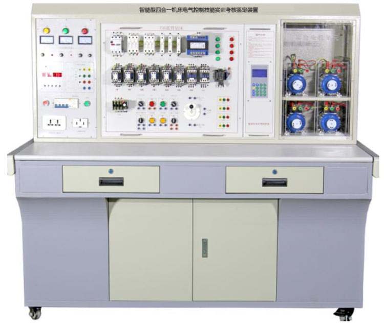 智能型四合一機(jī)床電氣控制技能實(shí)訓(xùn)考核鑒定裝置是按照勞動(dòng)和社會(huì)保障部頒發(fā)的“工人等級(jí)標(biāo)準(zhǔn)”和“職業(yè)技能鑒定”規(guī)范要求,結(jié)合工廠生產(chǎn)實(shí)際和職業(yè)崗位的技能要求,按照職業(yè)教育和實(shí)訓(xùn)考核特點(diǎn)而設(shè)計(jì)的產(chǎn)品。其適合高等職業(yè)學(xué)校、中等職業(yè)學(xué)校的機(jī)電設(shè)備安裝與維修、機(jī)電技術(shù)應(yīng)用、機(jī)床電路維修等課程的實(shí)訓(xùn)與考核,也適合技工學(xué)校機(jī)電類專業(yè)《電氣設(shè)備維修》課程的實(shí)習(xí)、安裝,維修電工技師班培訓(xùn)和實(shí)操。